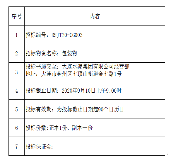 2.项目说明:乐竞体育(中国)官方网站组织对大连水泥厂水泥包装物采购项目进行邀请招标。凡接到本招标邀请的厂商均可参加投标。