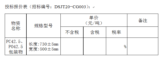 1.根据已收到贵方招标编号为DSJT2020-CG003的乐竞体育(中国)官方网站水泥包装物采购项目招标文件,遵照《中华人民共和国招标投标法》等有关规定,我单位经考察和研究上述招标文件的投标须知、约定条款、技术规范及其他有关文件后,我方愿投标报价(详见报价一览表)。